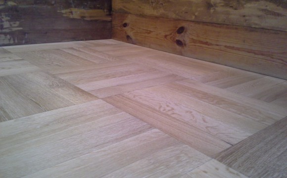Abschleifen und neu Ölen eines Eichen-Mosaikparkett in der Gaststube